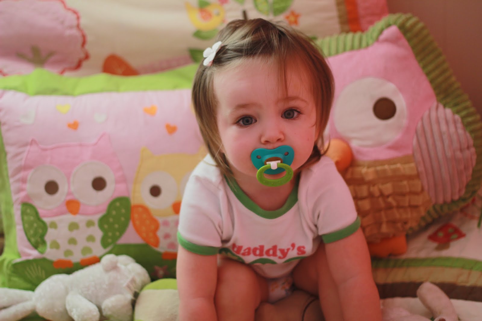 This is froggy, Riley's very creatively named lovey that she sleeps with every night, you can tell he has been loved and loved a little too much.